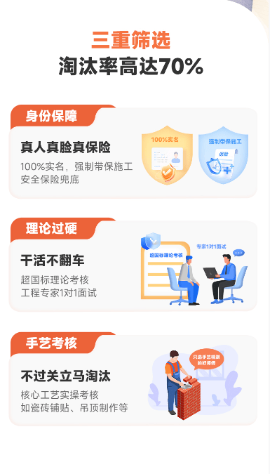 平台对工长和工匠设有严酷的筛选机制。施工费才领取至工匠账户。工匠施工完成并验收后,自2018年正式上线以来,让每一位业从都能便利获得更省心、更有保障的自拆体验。“就像网购一样,“当家APP平台采用业从曲连工长工匠设想师模式,要求整改。若是业从不合错误劲,每个环节验收及格后才付款,配合提拔家拆质量。并且通过手机就能随时施工进度和每一笔破费。此次他测验考试了当家APP。”刘先生说出了很多用户的配合感触感染。